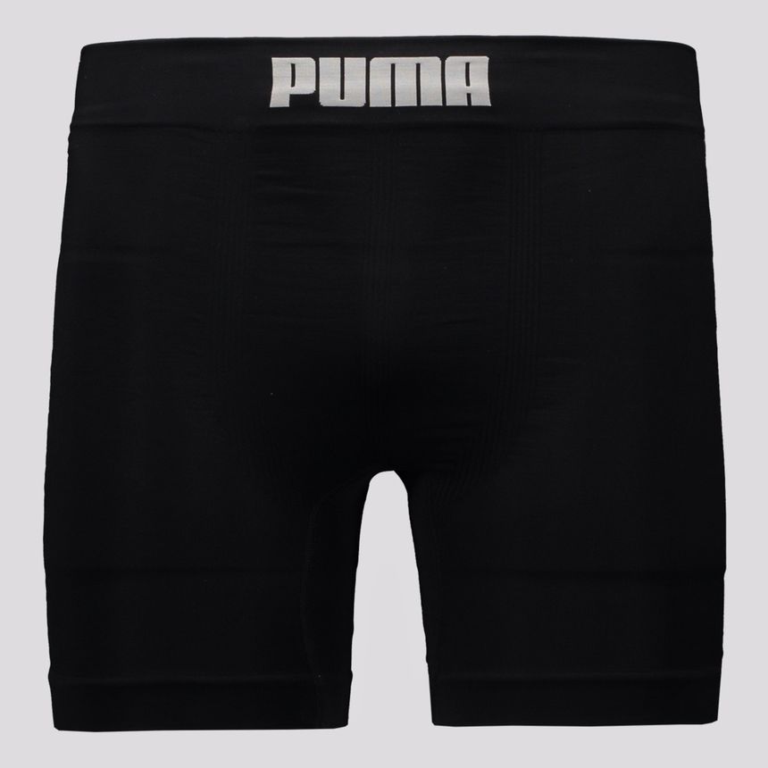 Cueca Boxer Longa sem Costura Puma (14120-001). Confeccionada em microfibra de alta tecnologia, para quem exige performance sem abrir mão do conforto nas atividades do dia a dia. Cueca modelagem boxer com pernas mais longas, para melhor compressão e diminuição de atrito. Desenvolvida com tecnologia Seamless, sem costura. Parte frontal com recorte anatômico, que se adapta perfeitamente ao corpo. Possui propriedades de controle de umidade e termo regular, permitindo que sua pele respire livremente. Cintura em elástico largo em tecido duplo personalizado com logotipo da marca. Barra com acabamento em tecido duplo. Qualidade Selene. Composição: 87% Poliamida, 07% Polipropileno e 07% Elastano.